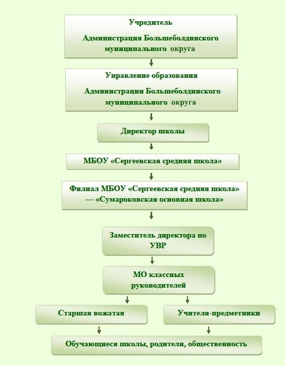 Управление образовательной организацией осуществляется в соответствии с законодательством РФ, Уставом МБОУ "Сергеевская средняя школа" на основе сочетания принципов единоначалия и коллегиальности. Непосредственное руководство образовательной организацией (далее ОО) осуществляет прошедший соответствующую аттестацию, назначаемый Учредителем с заключением трудового договора, директор.